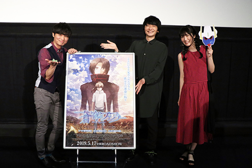 先行上映3日目を迎えた5月19日(日)、新宿ピカデリーにて真壁一騎役・石井 真、御門零央役・島﨑信長、水鏡美三香役・石川由依の3名が登壇しての舞台挨拶が開催された。この回は本編上映後の舞台挨拶ということで、ネタバレOKの自由なトークとなった。
